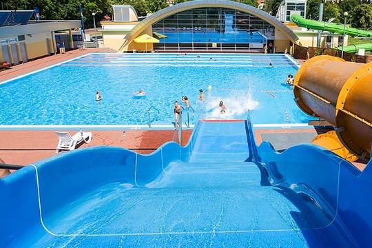 Kolonistów czeka super wodna zabawa w Aquapark-u Helios. W kompleksie znajduje się :basen pływacki ,basen rekreacyjny, gejzery powietrzne, zjeżdżalnia wodna o długości 45m, basen sezonowy: zjeżdżalnia wodna, zjeżdżalnia płaszczyznowa. Po wodnym szaleństwie kolonistów będą czekać pojazdy typu Melex, by bezpiecznie wrócić do ośrodka.